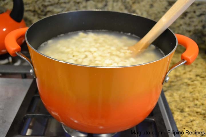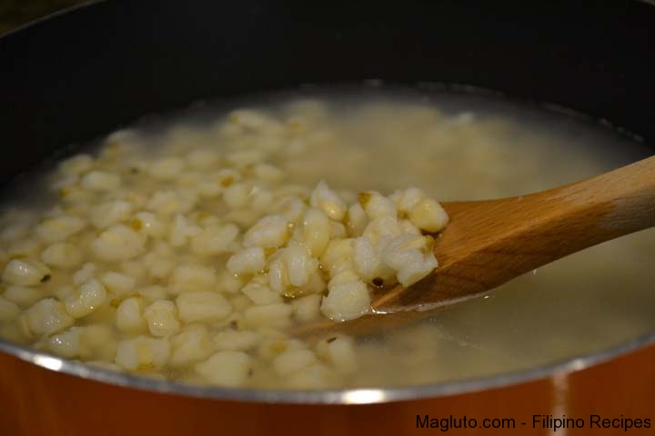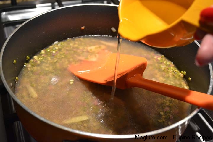 4. Pour in the broth (add water if broth is not enough). Bring to a boil.