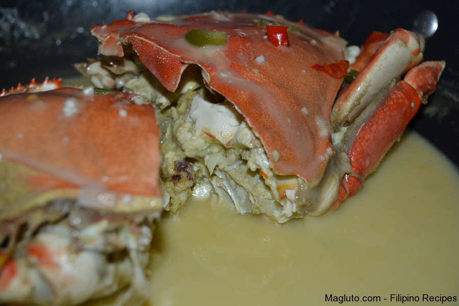 6. Scoop sauce from the wok and pour on the crab. Simmer for 5-10 minutes.