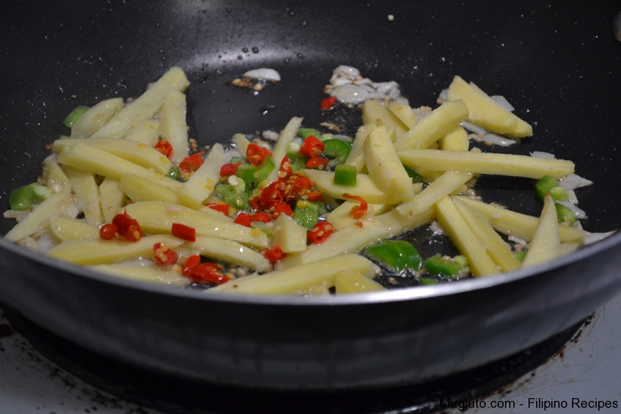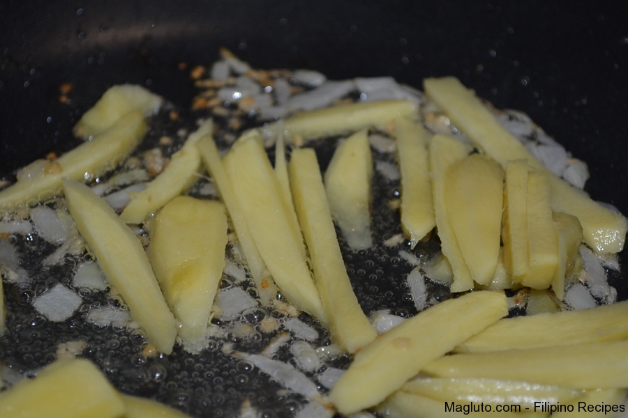 1. Heat cooking oil in a pan. Saute garlic, onion and ginger.