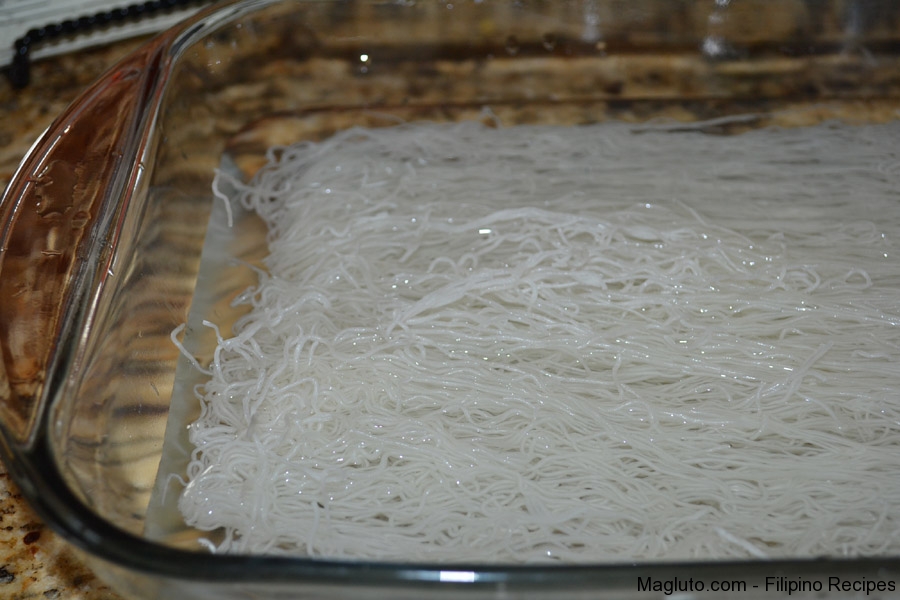 1. In a deep dish, soak rice noodles in water for about 5 minutes. Drain.
