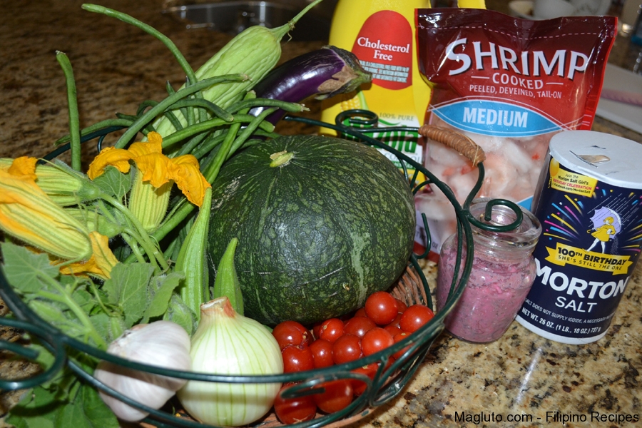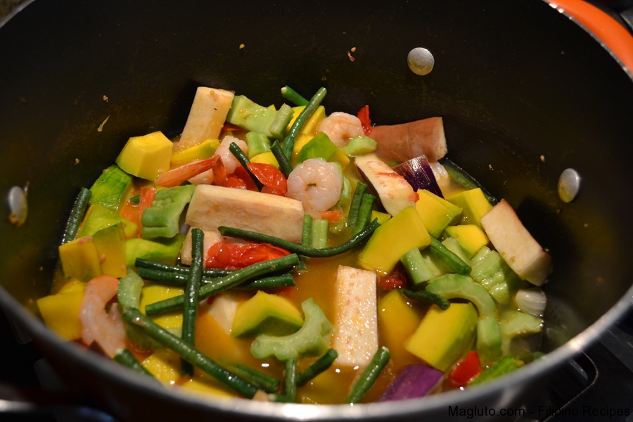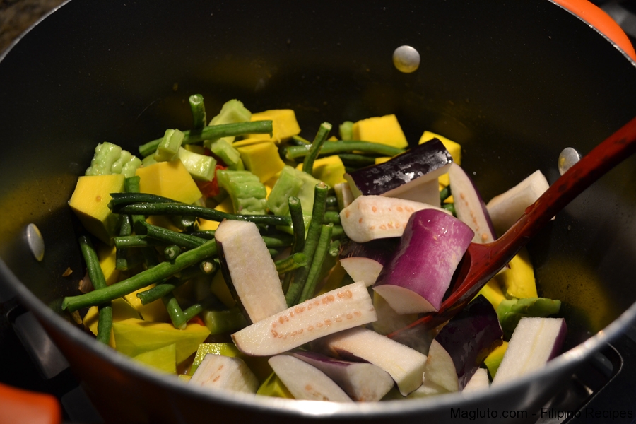 4. Then add squash, long beans, ampalaya and okra. Saute for a minute