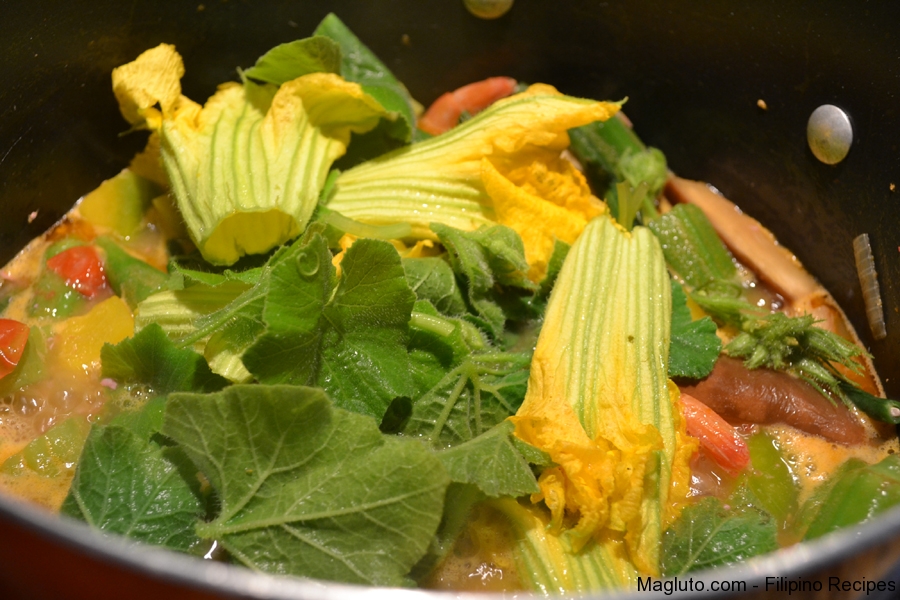 6. Then add the squash flower. Simmer for 1-2 minutes.